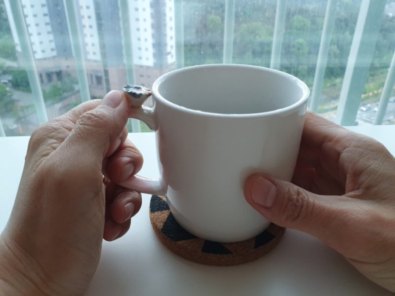 이렇게 컵 손잡이 상단에 꽃이 있어요. (웃음)