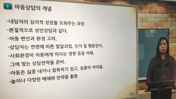 수강이 시작되었는데 앞부분은 이론적인 부분이 대체로 분포되어 있고 나중에 집단상담, 상담할 때 주의사항, 놀이치료, 미술치료 등에 대한 강의가 이어진다.