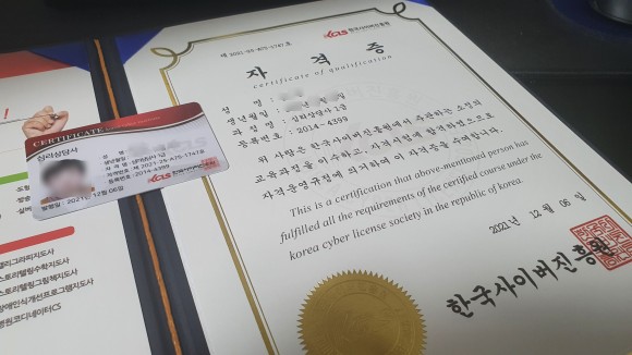 한국사이버진흥원 덕분에 자격증 취득까지 완료했다 무료로 공부해서 자격증을 취득하고 싶으신 분들은 신청해 보시길~!