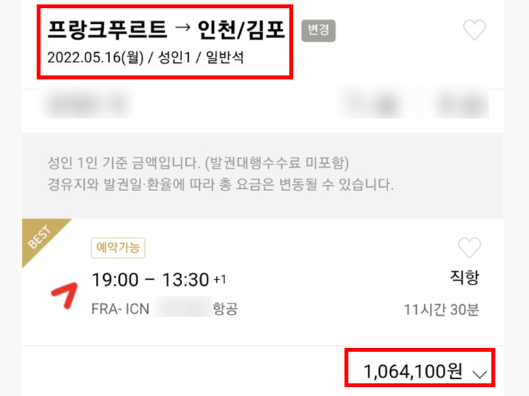 약 106만원이다. 뮌헨에서 출발하는 비행기와 비교해 엄청난 가격차가 아닐 수 없다. 그런데 일정상 16일 오후 이 비행기를 탈 수 없다는 게 가장 큰 문제점이다.