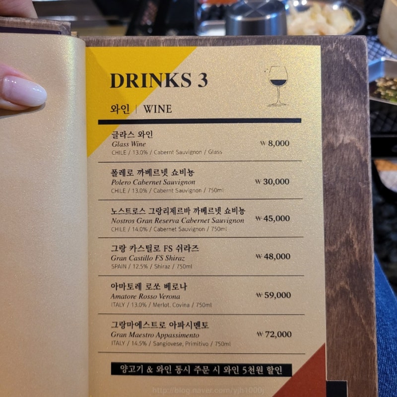 진1926 레스토랑의 메뉴입니다 – 양갈비 양등심살 프렌치랙모음 4인세트 양갈비/ 등심와인세트 사이드메뉴 와인/ 맥주/ 소주/ 고량주/ 하이볼/ 음료(주류가 다양해서 좋아요?)
