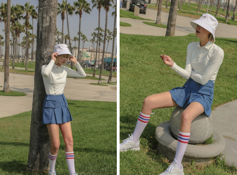 골프를 칠 때조차 세련되고 싶어하는 여성의 마음을 충족시키기 위해 탄생했다는 이 브랜드는 디자인 면 디자인, 고품질의 기능성 원단, 골퍼 편의에 맞춘 디테일 등을 모두 갖춘 동급 소비자를 위한 골프웨어 브랜드라고 합니다.약간 영한 느낌의 1990년대 스트릿한 느낌이 듭니다.국내에도 요즘 비슷한 분위기의 국내 브랜드가 많이 생겨서 가격면에서 조금 비싼 느낌이 드는 건 어쩔 수 없죠. ㅠ_ㅠ