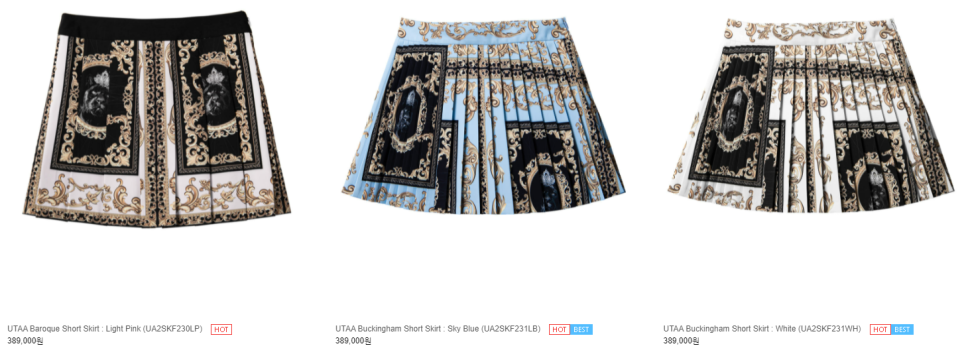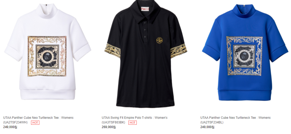 아래 BESTSELLINGITEM을 보면 확실히 다른 골프웨어 브랜드와는 차별점이 있는 것 같습니다.유타브랜드만의 프린트 패턴으로 중세시대 작품을 보는 느낌도 드네요!