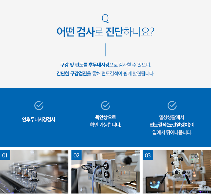 그런데 만약 편도결석으로 인해 1년간 항생제 치료를 5~6회 이상 시행하거나 통증, 구취, 이물감 등의 증상이 심해 편안한 생활이 어렵다면 편도를 절제하는 편도절제술도 고려해 보는 것이 좋습니다.