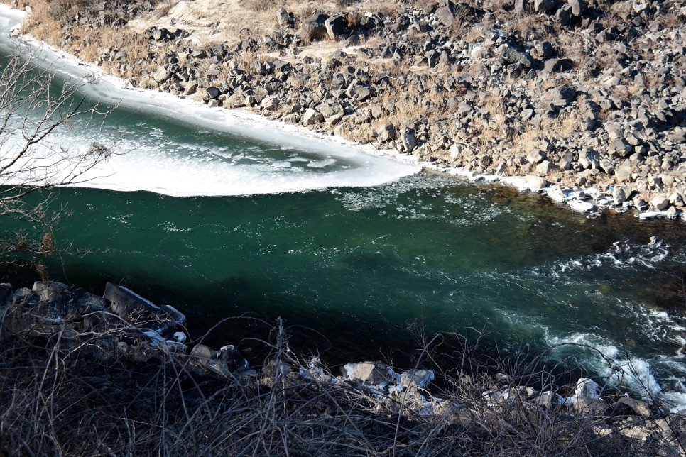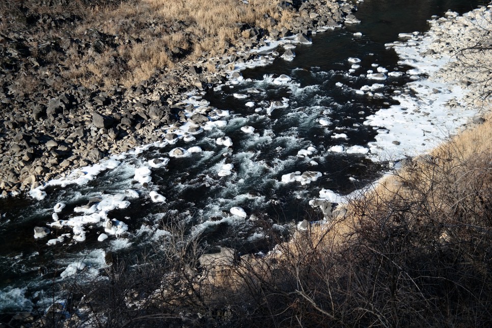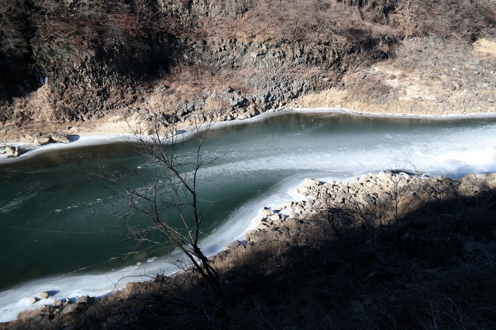 경사가 있는 곳은 얼지 않고 소리를 지르며 흐르고 있었다