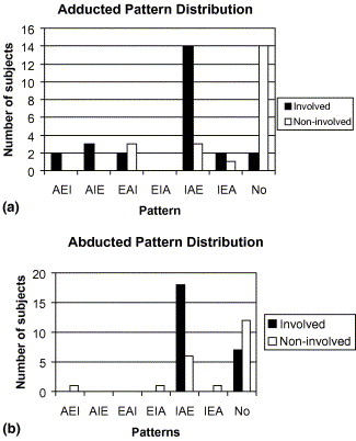 일차성, 오십견의 경우는 약 2년부터 2년 반 정도 시간이 지나면 회복이 되면 나타났으며 탈구, 골절 등에 오랫동안 고정 후 생긴 오십견의 경우는 1년 정도 걸립니다.특발성, 오십견의 가동 범위 소실의 특징 Rundquist, P.J.&Ludewig, P.M.(2004). Patterns of motion loss in subjects with idiopathic loss of shoulder range of motion.Clinical biomechanics, 19(8), 810-818. 오십견은 어깨를 거듭하고 있어 관절낭 조직의 유착성 염증이라고 불리고 있지 못하는 조직을 검사하면 유착(Adhesion)보다는 섬유화(fibrotic change) 되고 탄성을 잃고 가동 범위에 제한이 생긴다고 합니다.그래서 대부분의 오십견은 관절을 거듭하고 있어 관절낭의 주행 방향에 따른 일정한 패턴이 있고 그 패턴에 따라서 가동 범위가 시작된다고 합니다.(capsular pattern:우에후에 전- 뻗친 적 나의 회전-굴곡)