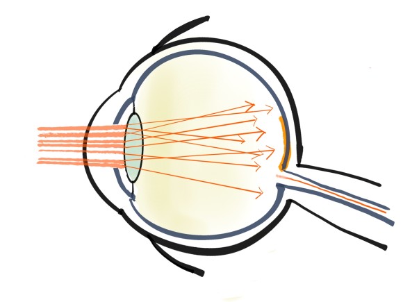 혼탁한 수정체에서 빛이 퍼지게 됩니다.