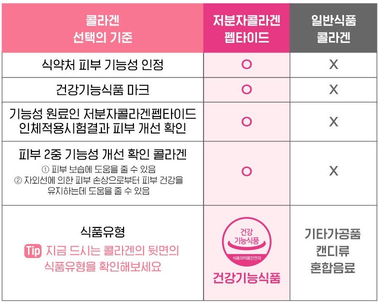 저분자 콜라겐 펩타이드는 일종의 단백질을 말하는데 콜라겐은 음식으로 먹기보다는 이런 형태로 먹어야 흡수율이 좋다고 했어요.