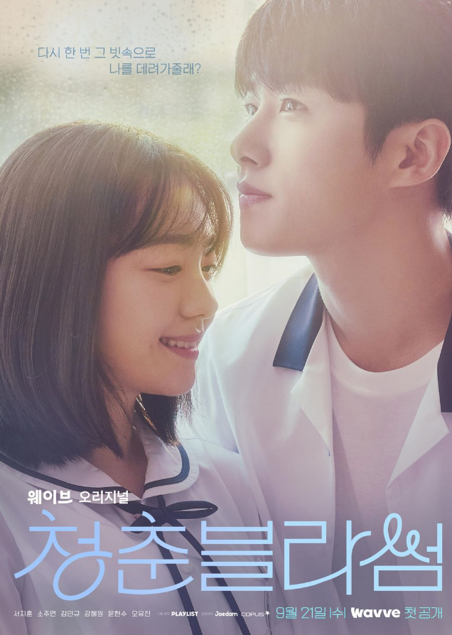 장르 : 학원물, 미스터리, 로맨스 개봉일 : 2022년 9월 21일 기간 : 2022년 9월 21일 ~ 2022년 11월 2일 횟수 : 16부 제작작사 : 플레이리스트, 제담, COPUS 원작 : 네이버 웹툰 홍덕 <청춘블라썸> 감독 : 왕혜련 작가 : 박윤선, 김하니 스트리밍 : 웨이브 출연 : 서지훈, 소주연, 김민규, 강혜원, 윤현수, 오유진 외등급 : 12세 이상 관람가 2. 청춘블라썸 줄거리