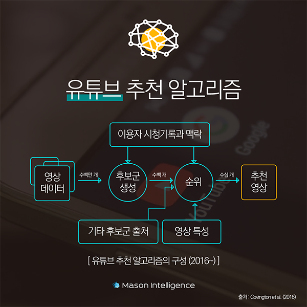 지금과 같은 정밀한 유튜브 추천 알고리즘이 구축된 것은 2016년부터라고 합니다.기존 추천 알고리즘에 ‘머신러닝’을 도입하면서 본격적으로 개인화된 추천이 시작되었습니다.