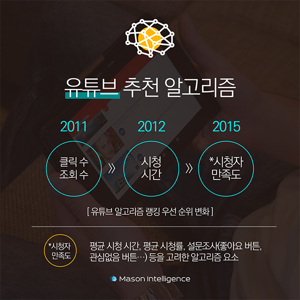 2015년부터 알고리즘에서 가장 많이 고려하는 요소를 ‘시청자 만족도’로 변경하게 됩니다.