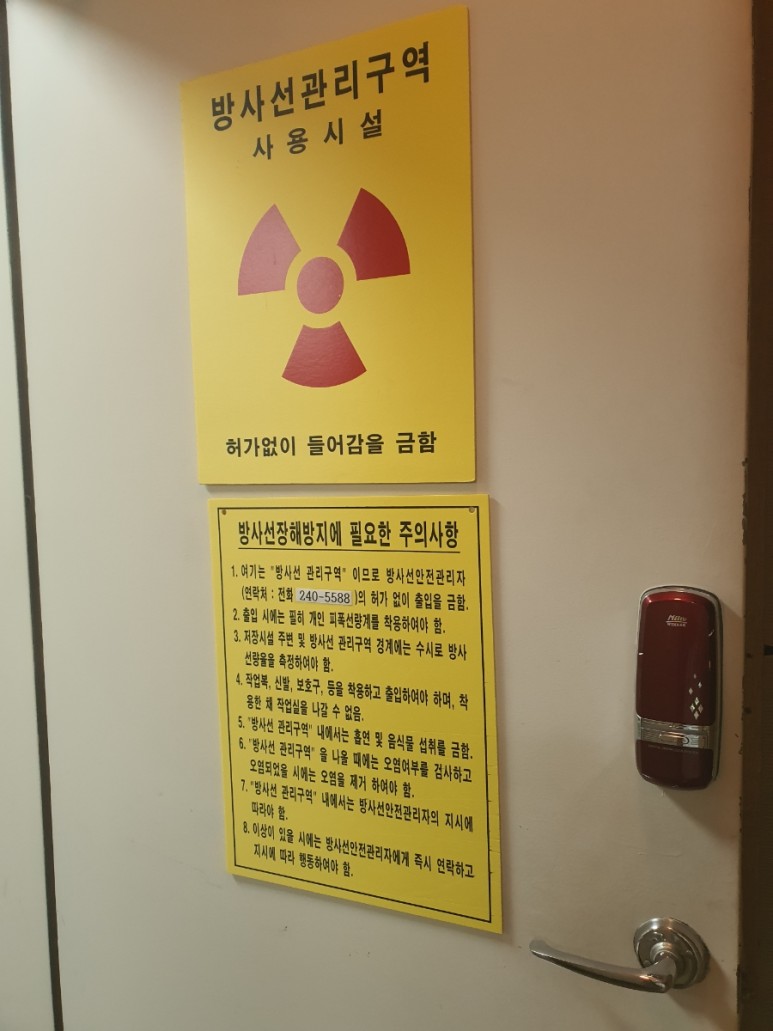 13시, 2박 3일 병실! 방사능 치료를 위해 독립된 납차실에 입원하게 된다.나갈 수 없고 간호사나 의사도 들어가지 않는 식사와 약은 중문과 외문 사이에 가져가는 방법으로 절대로 직접 접촉은 없는 자가 격리와 같은 개념.