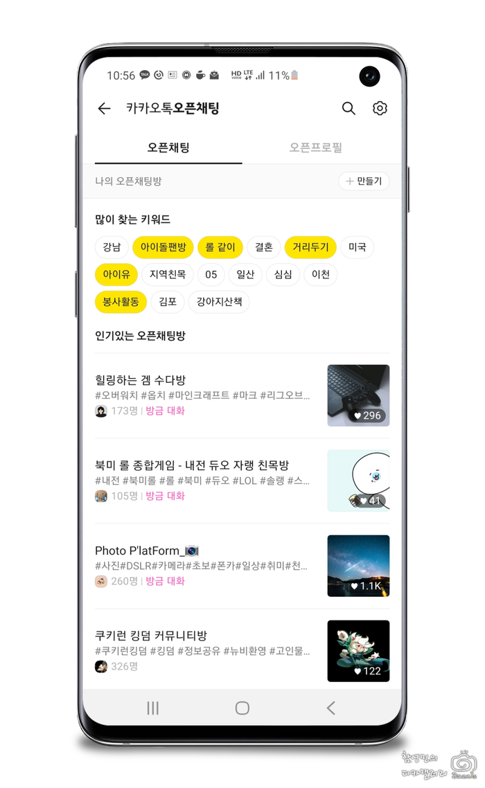 새 채팅에서 오픈 채팅을 선택한다. 많이 찾는 키워드를 선택할 수 있는데 여기에서 자신이 원하는 주제를 키워드로 선택하거나 입력한다.