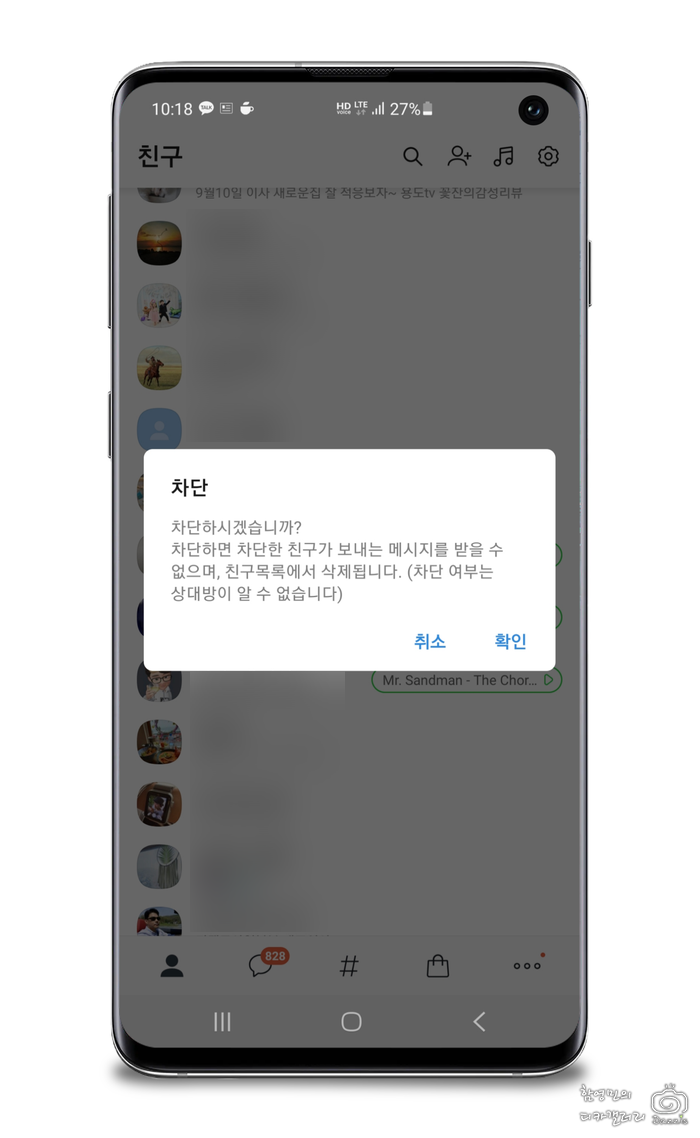 친구창에서 개별적으로 선택해 숨김이나 차단을 선택할 수 있는데 여기서 숨김은 친구창에서만 없애는 방법이고 차단은 처음부터 보낸 메시지를 보지 않게 되는 방법이다.