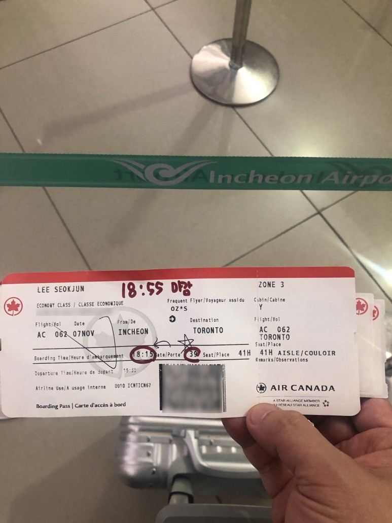 에어캐나다 AC 62, 인천-트로트 7번째 탑승… 편도 출국!