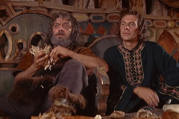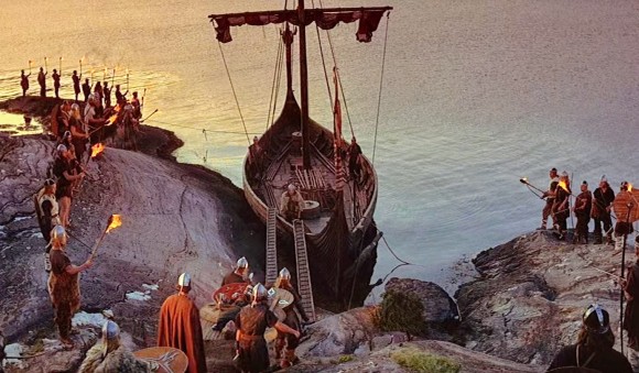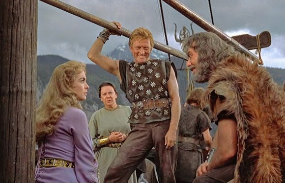 그러나 어린이를 태운 배는 항해 도중 바이킹의 습격을 받아 이들의 노예가 된다. 소년은 에릭(토니 커티스)이라는 이름의 청년으로 성장한다.한편 바이킹 레크나는 아이나(카그 더글러스)라는 아들을 두고 있다. 그는 무술에 능하고 호쾌한 젊은이로 레크나의 뒤를 잇게 될 것이다.그가 매사냥에 나서 노예 에릭을 만나게 되지만 사소한 다툼 끝에 아이나는 에릭의 매에게 한쪽 눈을 빼앗긴다. 아이나가 그를 죽이려 할 때 예언자인 키타라가 그를 죽인 사람은 저주받을 것이라고 제지한다.