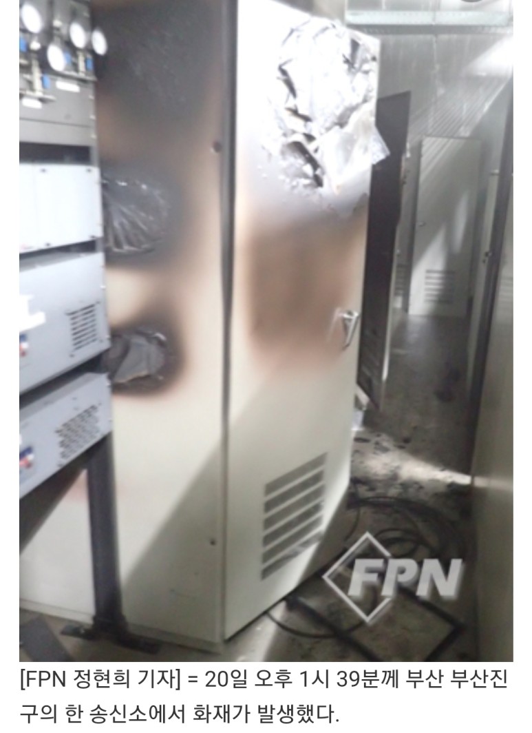 연합뉴스 보도자료 사용 지난해 10월께 부산진구 황령산 송신소 기계실 UPS 2층 화재발생 라디오와 DTV 부산 전역 케이블 시청 중단