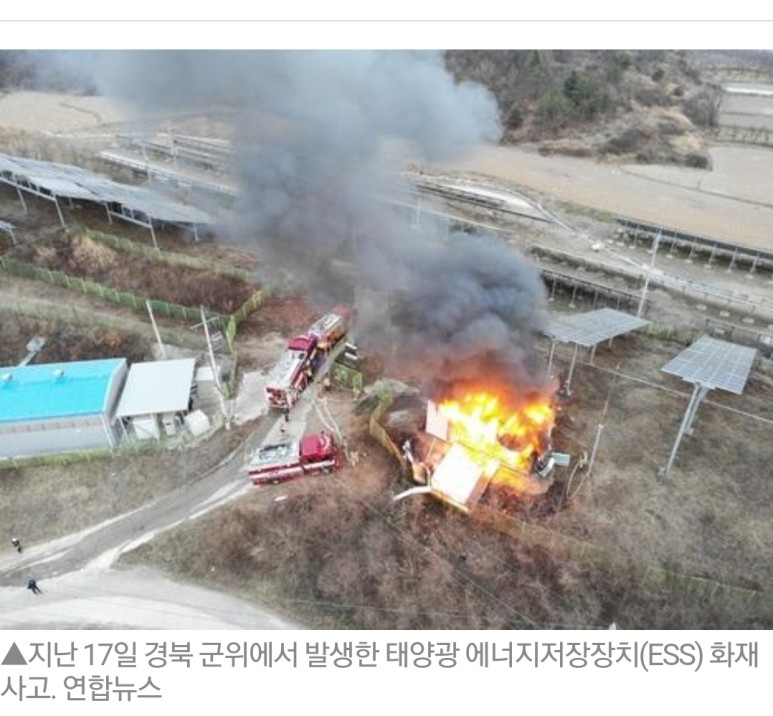 지난 1월 12일 울산과 17일 경북 군위 소재 ESS설비에서 잇따라 화재 발생 울산 SK에너지 사고의 경우 정부의 충방전 지침인 충전율 상한 90% 준수여도 화재 발생
