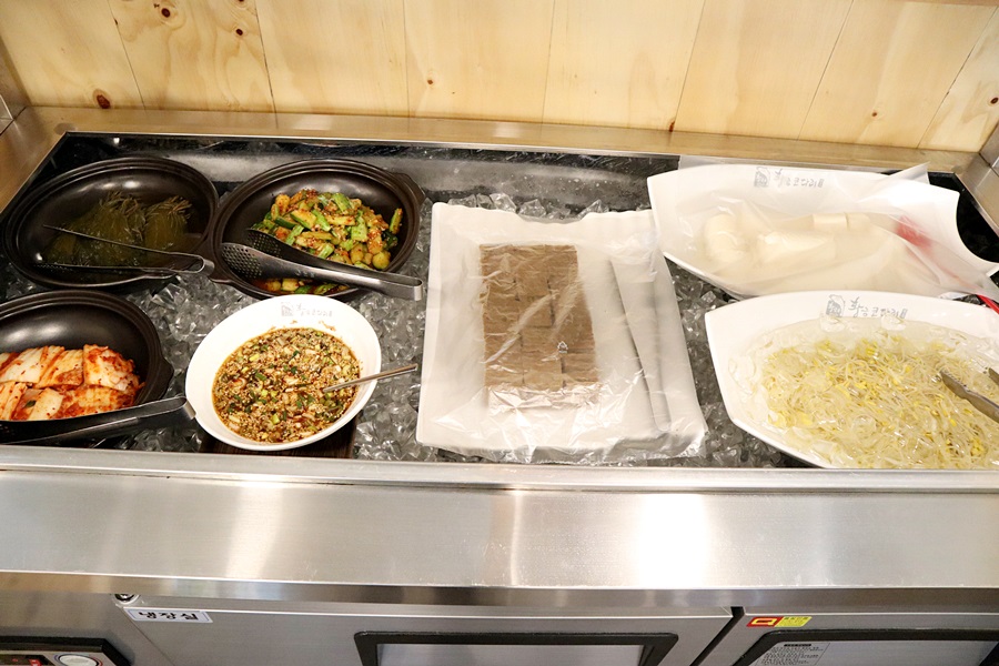 기본적으로 반찬이 셋팅되지만 셀프바에 추가로 필요한 반찬을 리필할 수 있고 기본 제공되는 반찬 외에도 닭곤약, 순두부 등 다른 반찬도 가져다 먹을 수 있어서 좋았다.