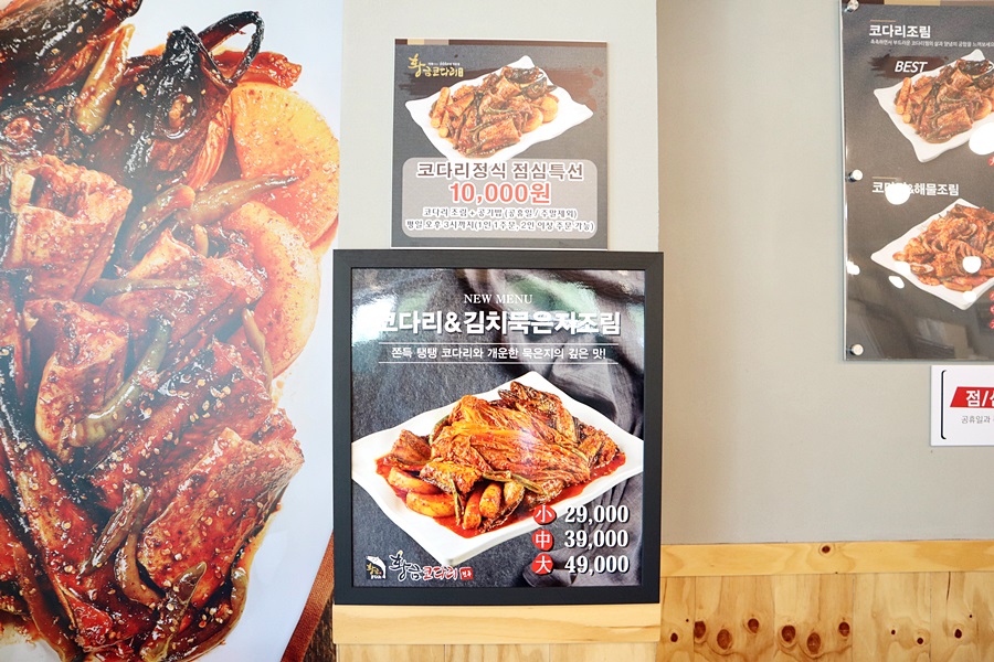 벽면에 일산 덕정동 맛집 메뉴가 크게 표시되어 있는데 베스트메뉴인 린코다리찜을 주문할까 생각하던 중 묵은지를 좋아해서 고다리묵은지를 주문했는데 묵은지를 좋아하는 분이라면 묵은지에 고다리찜이 너무 맛있어서 강추드리고 싶은 맛!!