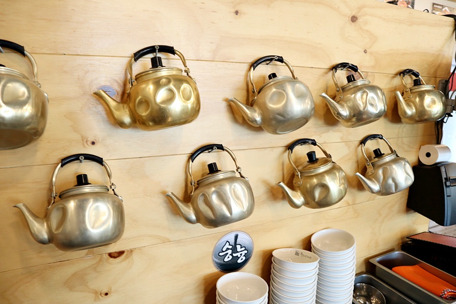 귀여운 막걸리 주전자가 벽에 걸려있는 송가문인 황금고다리덕이점♪한 주전자 골라 막걸리를 주전자에 따르는데 얼마나 온도가 시원하던지!!! 꼭 날짜를 정해서 막걸리 한잔 하고 싶었다!!