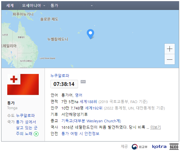 피해를 입은 마을이 태평양 인근 국가에서는 비상령이 내려진 적도 있습니다.이 중 쓰나미 피해를 직접 입은 오세아니아에 위치한 작은 섬의 나라 ‘통가’입니다.인구는 10만 명밖에 안 돼요.