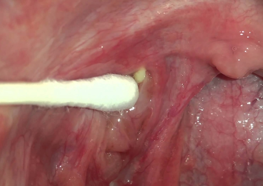 깨끗한 면봉으로 편도 주위를 가볍게 눌러 밀려나오는 결석을 제거하거나 강하게 양치질을 하는 방법을 들 수 있습니다.