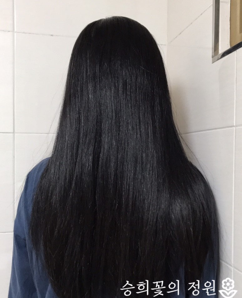 사진에서는 적당히 예뻐 보이지만 실제로는 저것보다 더 밝은 색에 푸석푸석함이 있을 수 없을 정도로 심하다.. 극손상모 그 자체였다. 머리카락이 빗자루처럼 보이는게 너무 싫어서 전체적인 톤다운을 위해 극단적인 선택을 했어 ㅋㅋㅋ 게다가 난 웜톤인데 쿨블랙으로. ㅋㅋㅋ 차가워보이고 싶었어.후후.