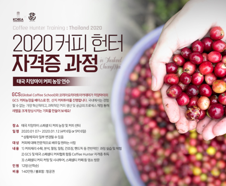 바리스타로서의 기술뿐만 아니라 원두의 수확, 선별, 로스팅까지 모든 것을 망라하는 협회이기 때문에 GCS 국제바리스타협회 회원이라면 커피농장에서 커피헌터 체험까지 체험할 수 있습니다! 저도 얼마전 태국 치앙마이의 GCS 지부가 주관하는 커피헌터 과정에 참여했습니다. (웃음)