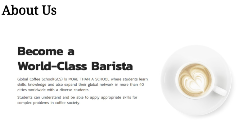 미국 LA에서 시작된 GC S는 전 세계에 지부를 두고 확장해 나간 것입니다. 2019년에는 마침내 한국의 서울에 지부를 두고 서울, 대구, 부산, 울산에 지부를 두게 되었습니다. 그리고 세계에서 가장 유명한 커피 도시 멜버른에도 진출하여 최근에는 호주 바리스타 챔피언을 배출하기까지 했습니다.