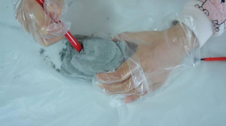 거의 완성이 다 돼가요 다치지 않게 조심해서 석고를 깨주면 됩니다.