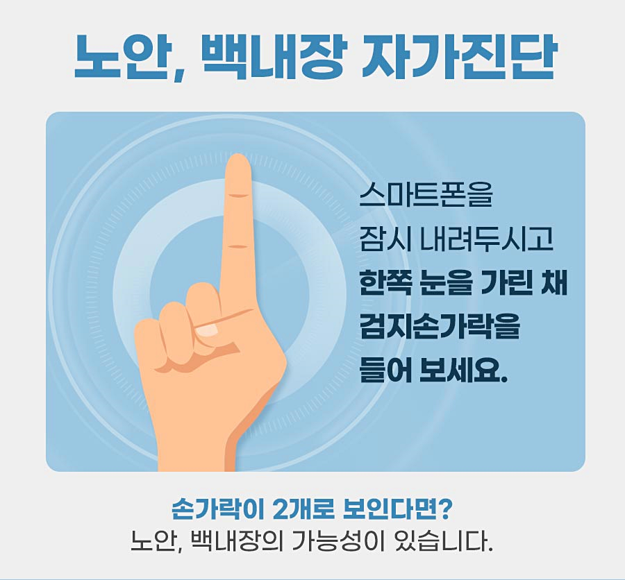 어느 날 갑자기 눈에 하얗게 퍼지는 현상이 나타나 물체를 보는 데 불편함을 느낀다면 백내장 수술을 잘하는 곳에서 검사를 받는 것이 좋습니다. 신체의 노화로 인한 퇴행성으로 눈이 침침할 수도 있지만 원인을 자세히 조사하고 대응하면 큰 어려움 없이 재활할 수 있습니다. 한쪽 눈을 가린 채 검지를 들었을 때 손가락이 2개로 보인다면 노안이나 백내장일 가능성이 높습니다.