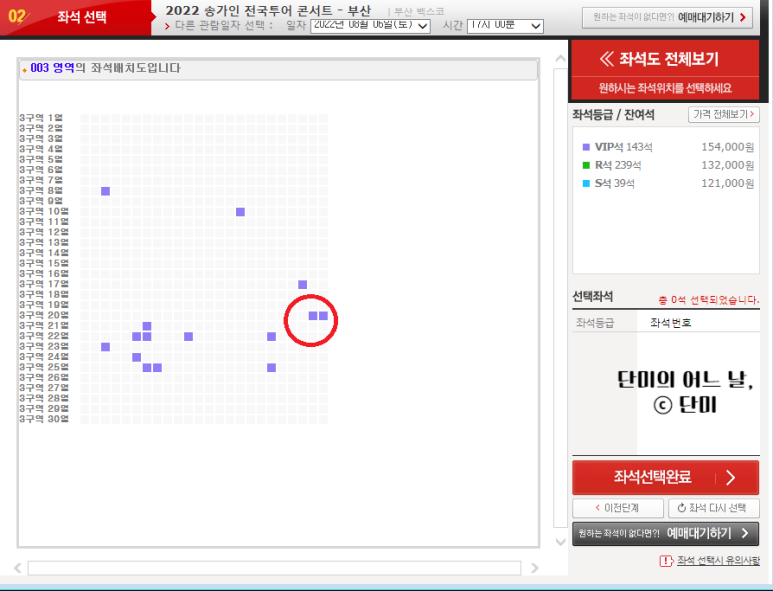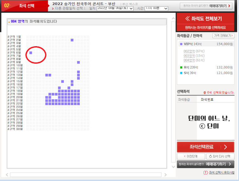 이왕이면 가장 좋은 VIP석(2,3,4구역)을 노린다!
