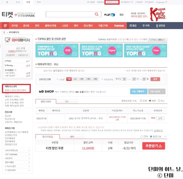 예약/취소 내역에 들어가서 다시 한번 확인해보겠다.