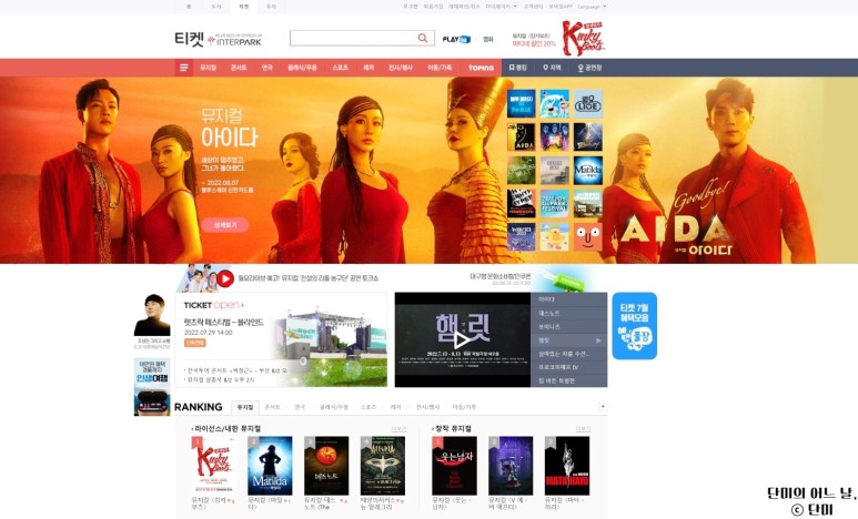 예매, 티켓배송, 현 장수령, 입장안내, 좌석배치도 접속 가능
