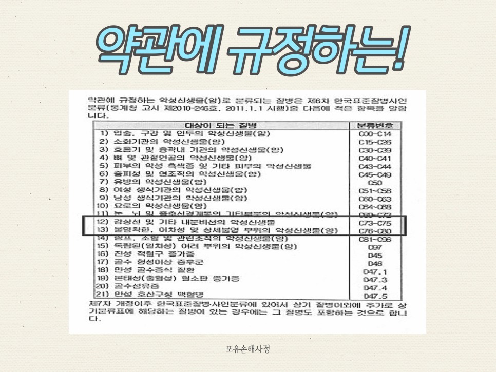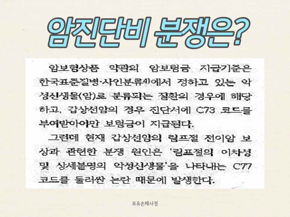 갑상선암 림프선 전이 분쟁에 오시는 분들은 대부분 이 약관이 개정되어 지급 기준이 강화되어 생각했던 금액과 다른 결과로 찾아옵니다.