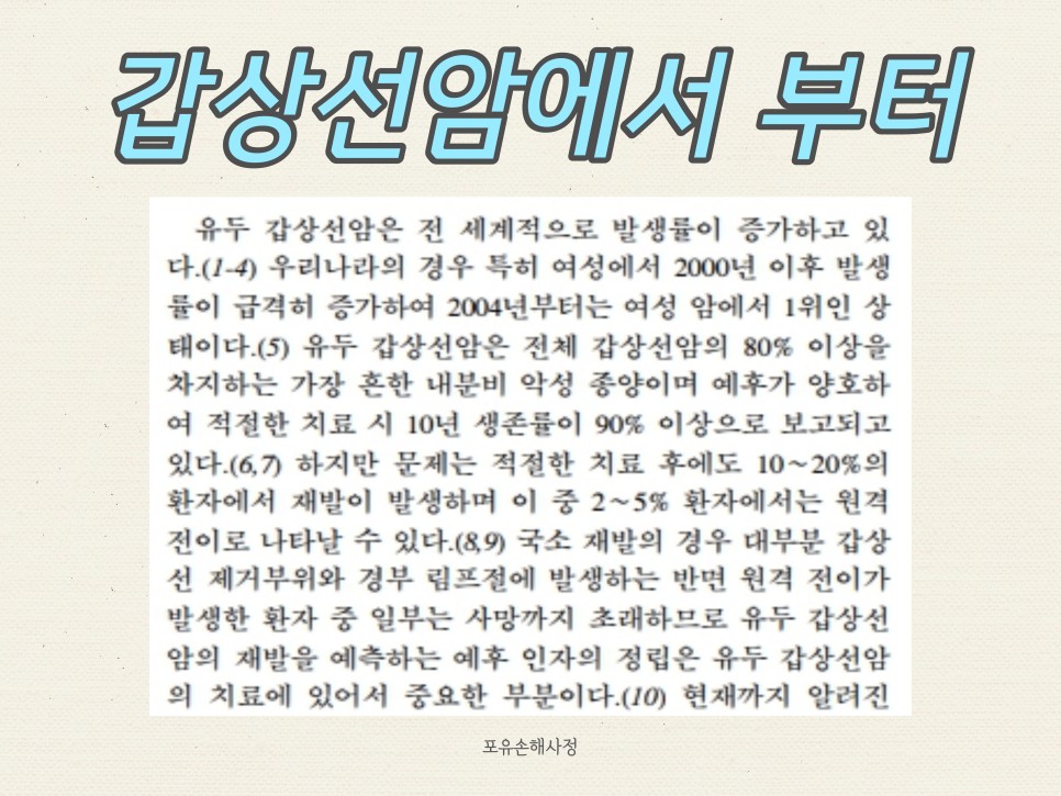 오늘도 보상에 관한 정보로 억울한 분들에게 도움이 되고자 찾아왔습니다.갑상선암의 림프선 전이는 질환 자체로도 힘들지만 진단비 문제로 인해 힘든 점이 한두 가지가 아니라고 합니다.어떤 점 때문에 어려움에 처하는지 알아보고 더 쉬운 방법으로 해결해 보세요.