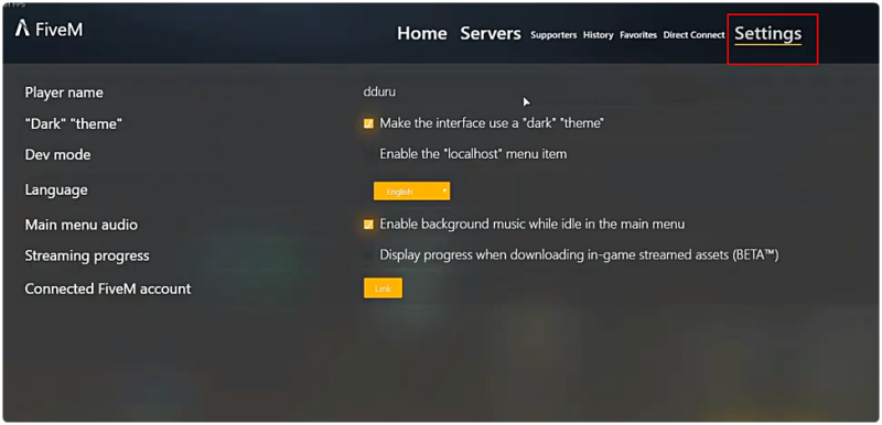 Playername에 본인이 사용하는 닉네임을 적어주세요.Dark, theme의 저 부분을 체크하면 화면이 아래와 같이 검정색을 기반으로 바뀝니다.